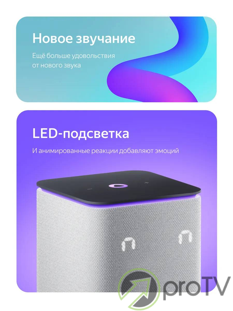 Активная контурная LED-подсветка и анимированные реакции на дисплее добавляют эмоций, когда слушаете музыку и общаетесь с Алисой. LED-дисплей показывает время и температуру.