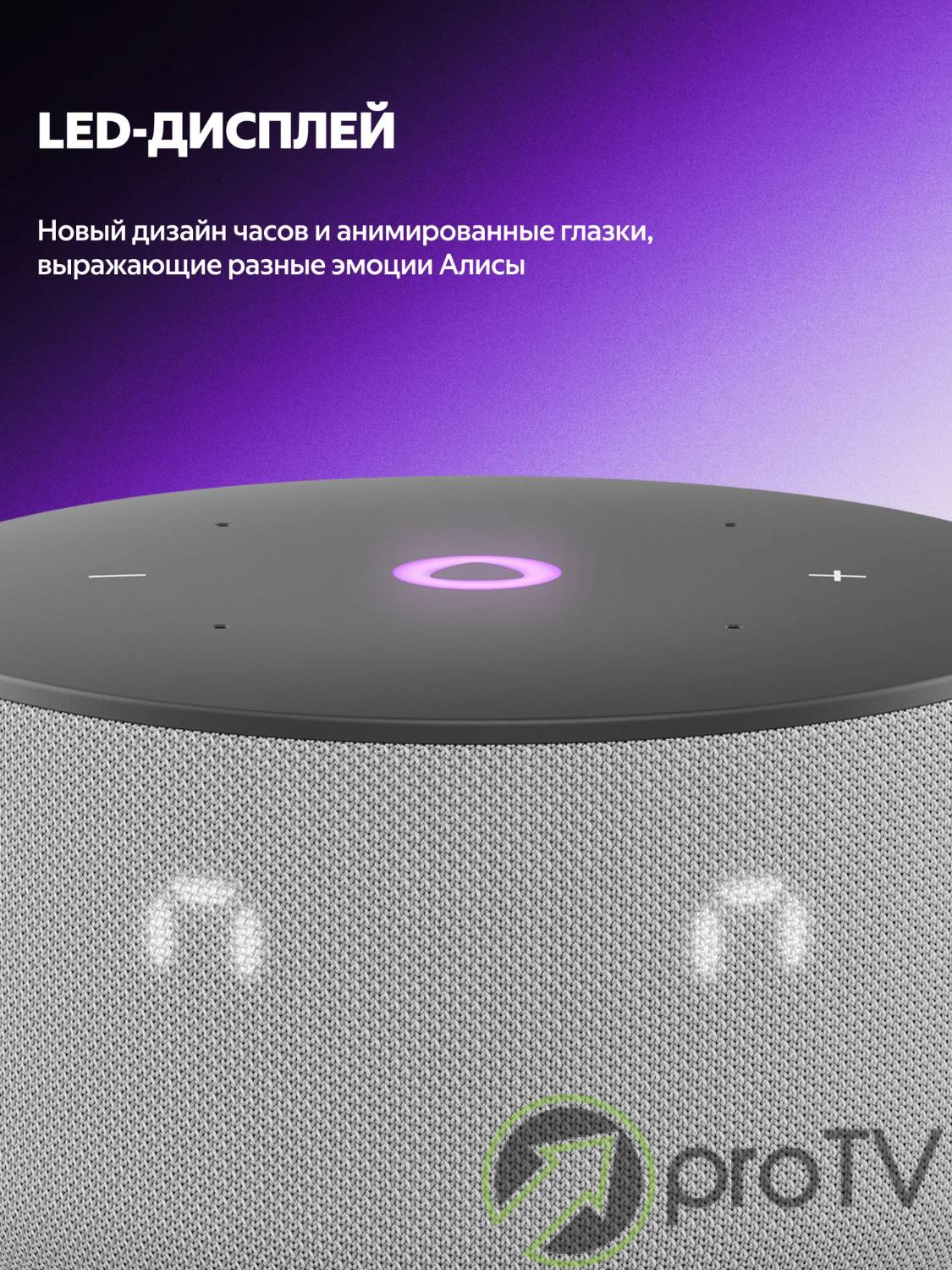 Благодаря более мягкой, цельной и гармоничной форме корпуса Станция Мини 3 отлично смотрится в любом современном интерьере. Цветовая палитра умной колонки тоже обновилась: можно выбрать классические чёрный и серый, а для ценителей акцентов подойдёт пастельный фиолетовый оттенок.